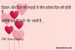 दिमाग और दिल की लड़ाई में जीत हमेशा दिल की होती है.......