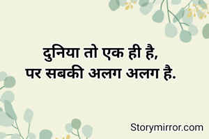 दुनिया तो एक ही है, पर सबकी अलग अलग है.