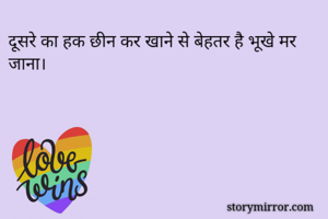 दूसरे का हक छीन कर खाने से बेहतर है भूखे मर जाना।