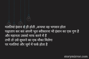 गलतियां इंसान से ही होती ,अन्यथा वह भगवान होता पश्चाताप कर कर अपनी भूल स्वीकारना भी इंसान का एक गुण है और महानता उसको माफ करने में हैं तभी तो उसे सुधरने का एक मौका मिलेगा पर गलतियां और जुर्म में फर्क होता है