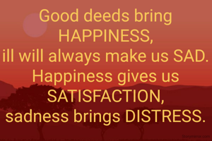 Good deeds bring HAPPINESS, ill will always make us SAD. Happiness gives us SATISFACTION, sadness brings DISTRESS.