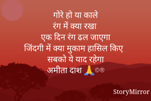 गोरे हो या काले रंग में क्या रखा एक दिन रंग ढल जाएगा जिंदगी में क्या मुकाम हासिल किए सबको ये याद रहेगा अमीता दाश 🙏©®