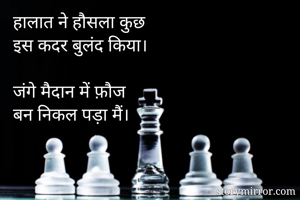 हालात ने हौसला कुछ इस कदर बुलंद किया। जंगे मैदान में फ़ौज बन निकल पड़ा मैं।