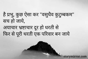 है प्रभु, कुछ ऐसा कर "वसुधैव कुटुम्बकम"