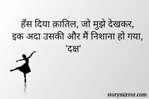 हँस दिया क़ातिल, जो मुझे देखकर, इक अदा उसकी और मैं निशाना हो गया, 'दक्ष'