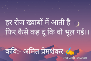 हर रोज ख्वाबों में आती है फिर कैसे कह दूं कि वो भूल गई।। कवि:- अमित प्रेमशंकर ✍️