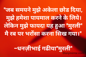 "जब समयने मुझे अकेला छोड दिया, मुझे हमेशा पायमाल करने के लिये। लेकिन मुझे फायदा यह हुआ "मुरली" मै रब पर भरोंसा करना सिख गया।" -धनज़ीभाई गढीया"मुरली"