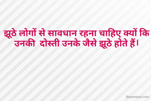 झूठे लोगों से सावधान रहना चाहिए क्यों कि उनकी दोस्ती उनके जैसे झूठे होते हैं।