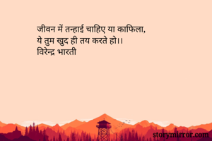 जीवन में तन्हाई चाहिए या काफिला, ये तुम खुद ही तय करते हो।। विरेन्द्र भारती