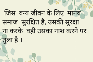 जिस वन्य जीवन के लिए मानव समाज सुरक्षित है, उसकी सुरक्षा ना करके वही उसका नाश करने पर तुला है ।