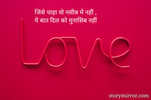 जिसे चाहा वो नसीब में नहीं , ये बात दिल को मुनासिब नहीं