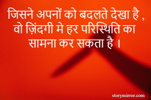 जिसने अपनों को बदलते देखा है , वो ज़िंदगी मे हर परिस्थिति का सामना कर सकता है ।