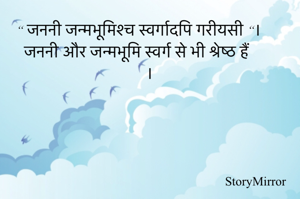 “ जननी जन्मभूमिश्च स्वर्गादपि गरीयसी “। जननी और जन्मभूमि स्वर्ग से भी श्रेष्ठ हैं ।