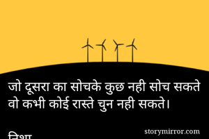 जो दूसरा का सोचके कुछ नही सोच सकते वो कभी कोई रास्ते चुन नही सकते। निशा