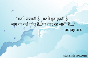 "कभी रूलाती है...कभी गुदगुदाती है... लोग तो चले जाते हैं...पर यादे रह जाती हैं...." - pujaguru