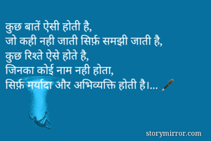 कुछ बातें ऐसी होती है, जो कही नही जाती सिर्फ़ समझी जाती है, कुछ रिश्ते ऐसे होते है, जिनका कोई नाम नही होता, सिर्फ़ मर्यादा और अभिव्यक्ति होती है।... 🖋️