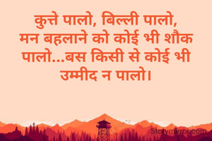 कुत्ते पालो, बिल्ली पालो, मन बहलाने को कोई भी शौक पालो...बस किसी से कोई भी उम्मीद न पालो।