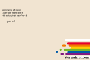 लहराते सागर को देखकर अक्सर ऐसा महसूस होता है जैसे वो बेहद बेचैन और परेशान है ! कृष्णा खत्री