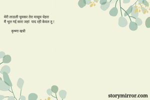 मेरी लाडली चूमकर तेरा मासूम चेहरा मैं भूल गई सारा जहां याद रही केवल तू ! कृष्णा खत्री