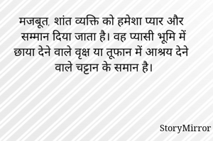 मजबूत, शांत व्यक्ति को हमेशा प्यार और सम्मान दिया जाता है। वह प्यासी भूमि में छाया देने वाले वृक्ष या तूफान में आश्रय देने वाले चट्टान के समान है।