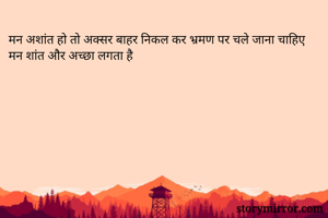 मन अशांत हो तो अक्सर बाहर निकल कर भ्रमण पर चले जाना चाहिए मन शांत और अच्छा लगता है