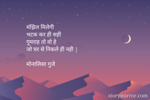 मंझिल मिलेगी भटक कर ही सही गुमराह तो वो हे जो घर से निकले ही नही | मोनालिसा गुजे