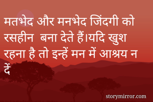 मतभेद और मनभेद जिंदगी को रसहीन बना देते हैं।यदि खुश रहना है तो इन्हें मन में आश्रय न दें