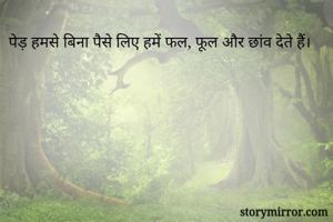 पेड़ हमसे बिना पैसे लिए हमें फल, फूल और छांव देते हैं।