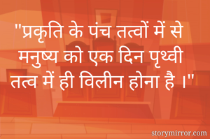 "प्रकृति के पंच तत्वों में से मनुष्य को एक दिन पृथ्वी तत्व में ही विलीन होना है ।"