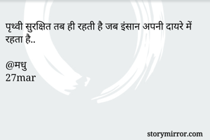 पृथ्वी सुरक्षित तब ही रहती है जब इंसान अपनी दायरे में रहता है.. @मधु 27mar