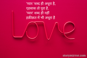 'प्यार 'शब्द ही अधूरा है, एहसास तो पूरा है. 'प्यार' शब्द ही नहीं हक़ीक़त में भी अधूरा है