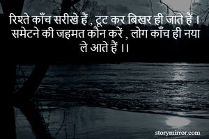 रिश्ते काँच सरीखे हैं , टूट कर बिखर ही जाते हैं । समेटने की जहमत कौन करें , लोग काँच ही नया ले आते हैं ।।