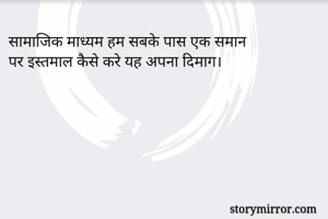 सामाजिक माध्यम हम सबके पास एक समान पर इस्तमाल कैसे करे यह अपना दिमाग।
