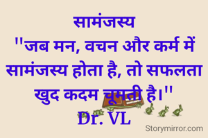 सामंजस्य "जब मन, वचन और कर्म में सामंजस्य होता है, तो सफलता खुद कदम चूमती है।" Dr. VL
