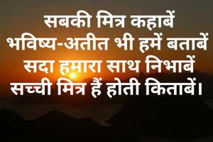 सबकी मित्र कहाबें भविष्य-अतीत भी हमें बताबें सदा हमारा साथ निभाबें सच्ची मित्र हैं होती किताबें।
