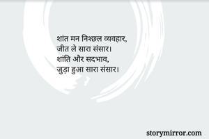 शांत मन निश्छल व्यवहार, जीत ले सारा संसार। शांति और सदभाव, जुड़ा हुआ सारा संसार।