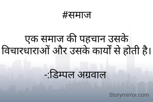 #समाज एक समाज की पहचान उसके विचारधाराओं और उसके कार्यों से होती है। -:डिम्पल अग्रवाल