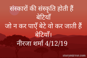 संस्कारों की संस्कृति होती हैं बेटियाँ