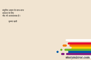 संतुलित आहार के साथ-साथ स्वास्थ्य के लिए नींद भी अत्यावश्यक है ! कृष्णा खत्री