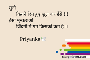 सुनो कितने दिन हुए खुल कर हँसे !!! हँसो मुस्कराओ जिंदगी मे गम किसको कम है ।। Priyanka🕊