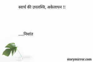 स्वार्थ की उपलब्धि, अकेलापन !! .....निशांत