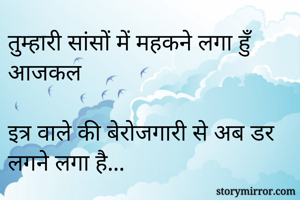 तुम्हारी सांसों में महकने लगा हुँ आजकल इत्र वाले की बेरोजगारी से अब डर लगने लगा है...