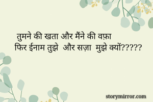 तुमने की खता और मैंने की वफ़ा फिर ईनाम तुझे और सज़ा मुझे क्यों?????