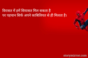 विरासत में हमें सियासत मिल सकता है पर पहचान सिर्फ अपने काबिलियत से ही मिलता है।