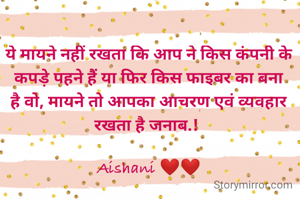 ये मायने नहीं रखता कि आप ने किस कंपनी के कपड़े पहने हैं या फिर किस फाइबर का बना है वो, मायने तो आपका आचरण एवं व्यवहार रखता है जनाब.!
