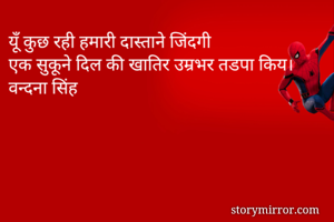यूँ कुछ रही हमारी दास्ताने जिंदगी एक सुकूने दिल की खातिर उम्रभर तडपा किय। वन्दना सिंह