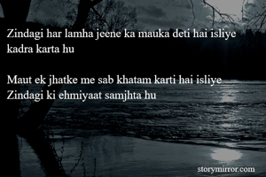 Zindagi har lamha jeene ka mauka deti hai isliye kadra karta hu