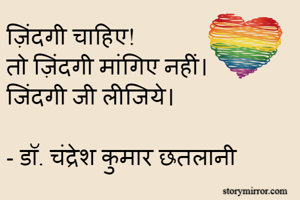 ज़िंदगी चाहिए! तो ज़िंदगी मांगिए नहीं। जिंदगी जी लीजिये। - डॉ. चंद्रेश कुमार छतलानी