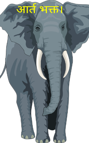 रो-रोकर किए हुए इस आर्तनाद ने और करुणा स्वर की चिंघाड़ ने हाथी के मुख से निकलकर सीधी बैकुंठ में जाकर ठोकर खाई ,भगवान का सिंहासन हिलने लगा वह एकदम उठकर भागे और उस झील पर पहुंचकर मगरमच्छ को मार डाला और हाथी की प्राण रक्षा की। इस प्रकार इसी भक्ति को "आर्त भक्ति" कहते हैं। यह हाथी आर्त भक्त कहलाये जाने का अधिकार रखता है। और यही कथा पुराणों में गज और मगरमच्छ की लड़ाई के नाम से प्रसिद्ध है।