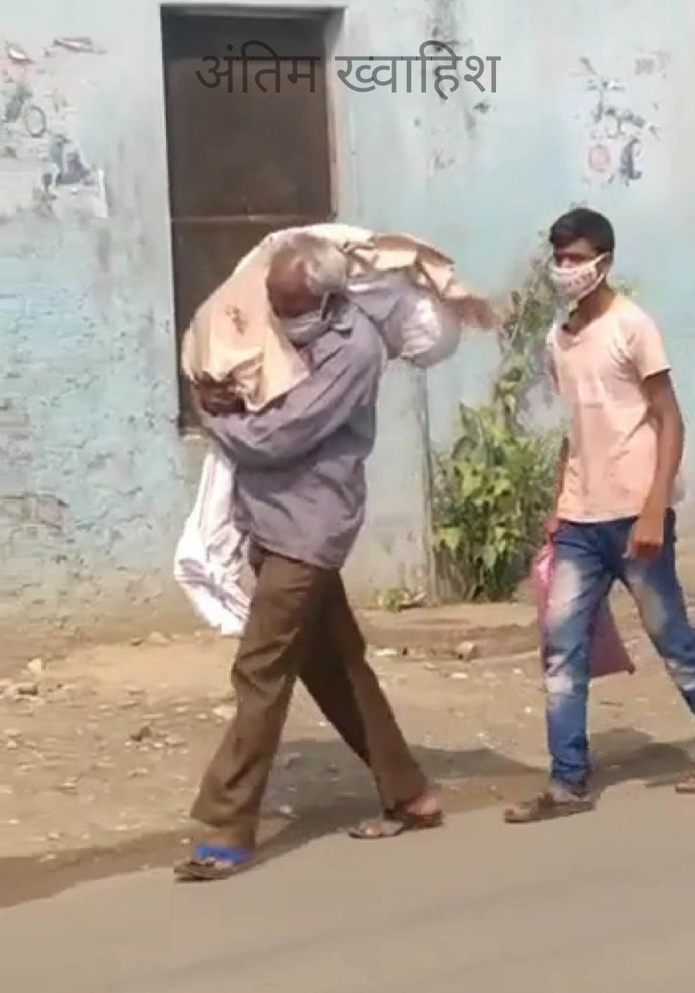 वह वापस लौट आया कलावती के पास। अस्पताल कर्मी बार बार धरमू व सोहन को कलावती से दूर रहने की सलाह दे रहे थे और उसके शव को अन्य शवों के साथ सामूहिक संस्कार के लिए ले जाने की तैयारी करने लगे। उनकी सुगबुगाहट पाकर धरमू ने घर से लाई गई कपड़ों की पोटली सोहन को पकड़ाई और झुककर कलावती के पार्थिव शरीर को लाद लिया अपने काँधे पर और इससे पहले कि कोई कुछ समझ पाता वह अस्पताल से बाहर सड़क पर आ गया।